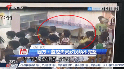 园方的解释是,幼儿园内的监控在事发一刻“失灵”了,因此视频不具有连贯性。但来回翻看视频可见,孩子似乎是想在椅子上站起来,一名身穿红衣服的老师一手拿着饭碗,一手拽着孩子的后衣领,当事孩子直接被拽过了一个座位。然而,就当记者陪同家长,再次来到幼儿园了解情况时,从幼儿园内陆续走出了好几位老师和工作人员,阻止正常采访,最终还与家长发生了争执。