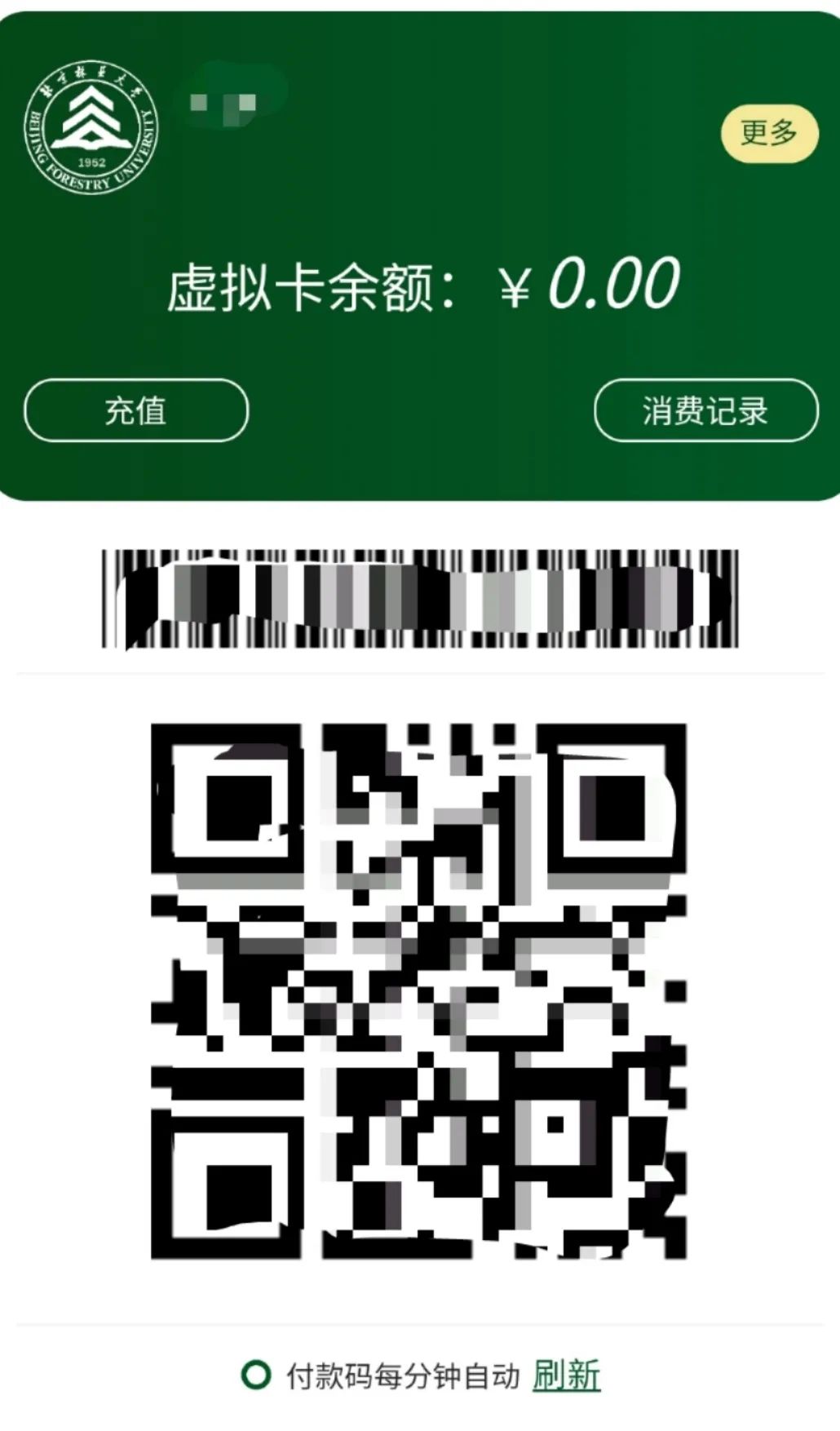 3. 新生在入学后即可拿到本人的一卡通,初始密码为:000000(或123456)。一卡通可通过支付宝“校园生活”或微信公众号“数字北林”进行充值。