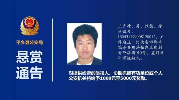 为严厉打击违法犯罪行为,进一步加大追逃力度,全力维护平乡县社会治安稳定和人民生命财产安全,平乡县公安局公开通缉17名在逃人员。