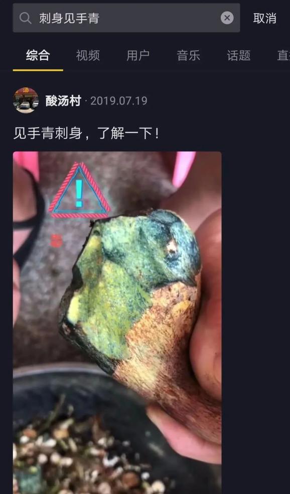 在抖音上,有数十个“见手青”的关联话题,一些话题的播放量超过4000万次。在一个题为“刺身见手青”的话题下,一名网友上传了两段疑似生吃“见手青”的视频,引发其他网友热议。有人直言,这样做太危险了,可能造成不可挽回的悲剧。