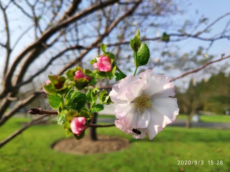 好奇网友樱花一般是3、4月份开放,所以是在春季。现在秋季,为什么樱花也开了呢?是否今年初秋雨水多温度较往年底所引起的呢?(这是今天下午在上海辰山植物园拍摄的。