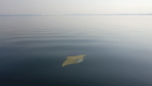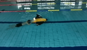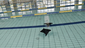 “头部”扁而宽,“尾部”扁而尖,“翅膀”(翼状鳍)和身体融为一体。去年“魔鬼鱼”刚刚落户西工大时,它在游泳池里扑动、滑翔、急停、转弯、穿越……好不自在。
