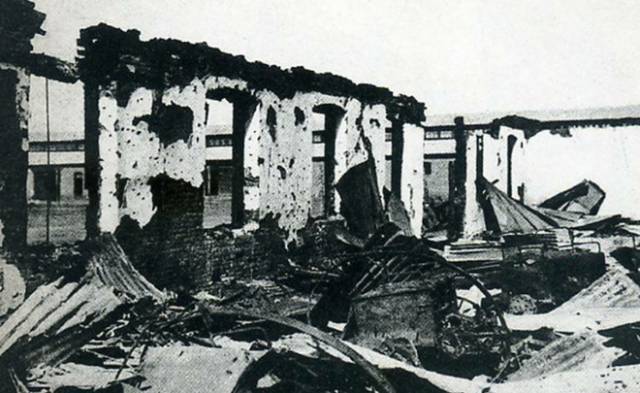 ▲被日军炮火摧毁的中国军队营房1931年9月19日