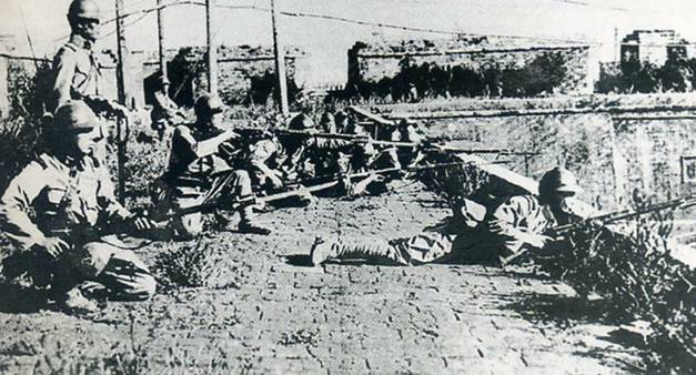 ▲攻占城墙的日军居高临下,向沈阳城内射击