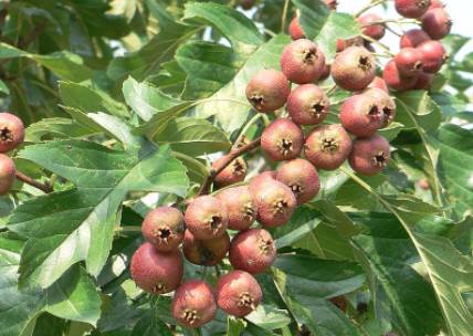 在华北,成熟的山楂果实一般会在寒露后采摘,刚采的山楂含水量就比大部分水果低,只有70%多点,含糖量也不高,有机酸却不少,其中的柠檬酸、酒石酸、苹果酸等和糖类一起构成了酸中带甜的风味。生鲜山楂不能空腹吃,容易引起胃石症,其原因也是果实中的一种叫做山楂酸的有机酸,它们会在胃内的酸性环境中凝聚成网状结构的高分子化合物,形成胃石,严重时令人恶心、腹痛。而且我个人觉得生鲜山楂也不好吃,其中含有很多淀粉,又酸又面,一点也不爽脆,经过短期贮藏后,山楂中的淀粉转化成甜味的小分子糖,甜度提升一点,味道还会好一些。