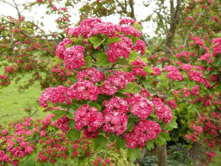 在桃杏李梅樱等容易互相混淆的蔷薇科花木中,山楂是比较容易辨认的一种,具有羽状深裂的叶片让它即使不在花果期也很难被认错,每年春末会在枝头开出白色小花组成的伞房花序。《山楂树之恋》的原著小说里描写了一株开红花的山楂树,但是张艺谋的电影中却没有表现出来,我们吃的山楂开花虽然是白色,但是园艺界已经驯化出了很多红花的观赏山楂品种,其实并不难找。