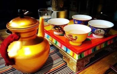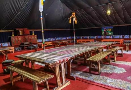 坐在帐篷里吃着手抓肉 喝着酥油茶