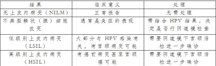 2、TCT报告:TCT检查,又叫“宫颈脱落细胞检查”,主要是通过观察细胞形态来筛查宫颈疾病。常见结果如下: