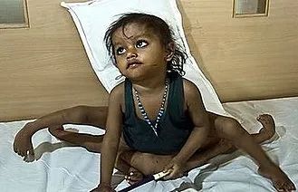 同年印度比哈尔邦出生的拉克希米·塔特玛生下来就有四条胳膊和四条腿,她的一套四肢处在正常位置,但骨盘处又长出一套四肢,看上去就像一个没有脑袋的身体挂在另一个身体上,多出来的四肢使她无法站立。