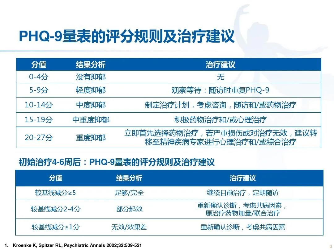 PHQ-9评分可以跟踪患者的症状和问题,并系统地追踪评估治疗效果。