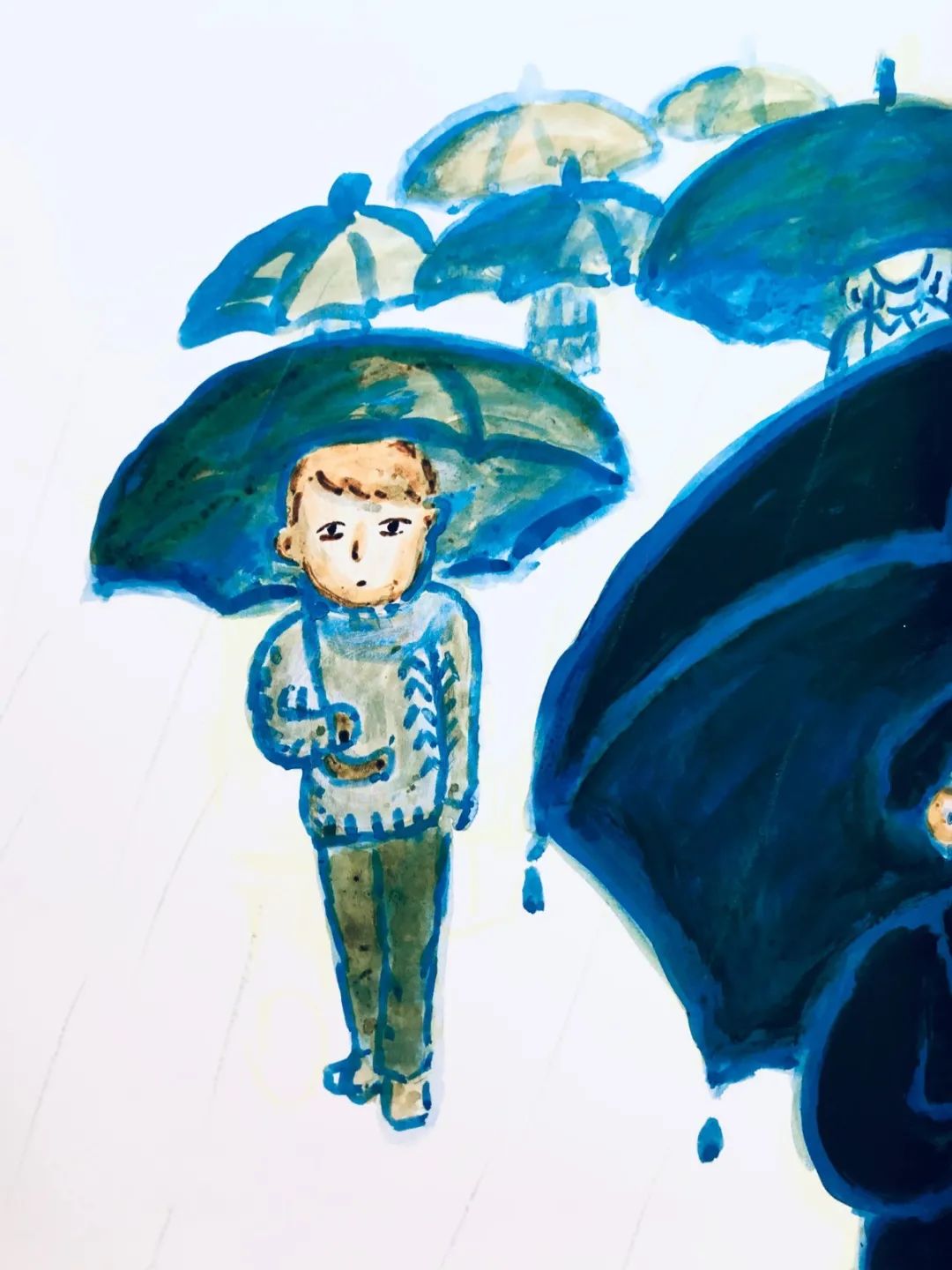 大叔自个儿唠唠叨叨,下雨,别下雨,别下雨,下雨……天天倒没有这样麻烦。下雨,就希望雨下得更大,穿上他的黄色的雨衣和雨靴,像只小黄鸭一样,连蹦带跳跑到小区的公园去,专挑有水洼的地方,踏进去,跳出来,水花四溅,不理好歹——究竟大叔小时候有没有热衷这个匪夷所思的“游戏”?唉,都忘了。