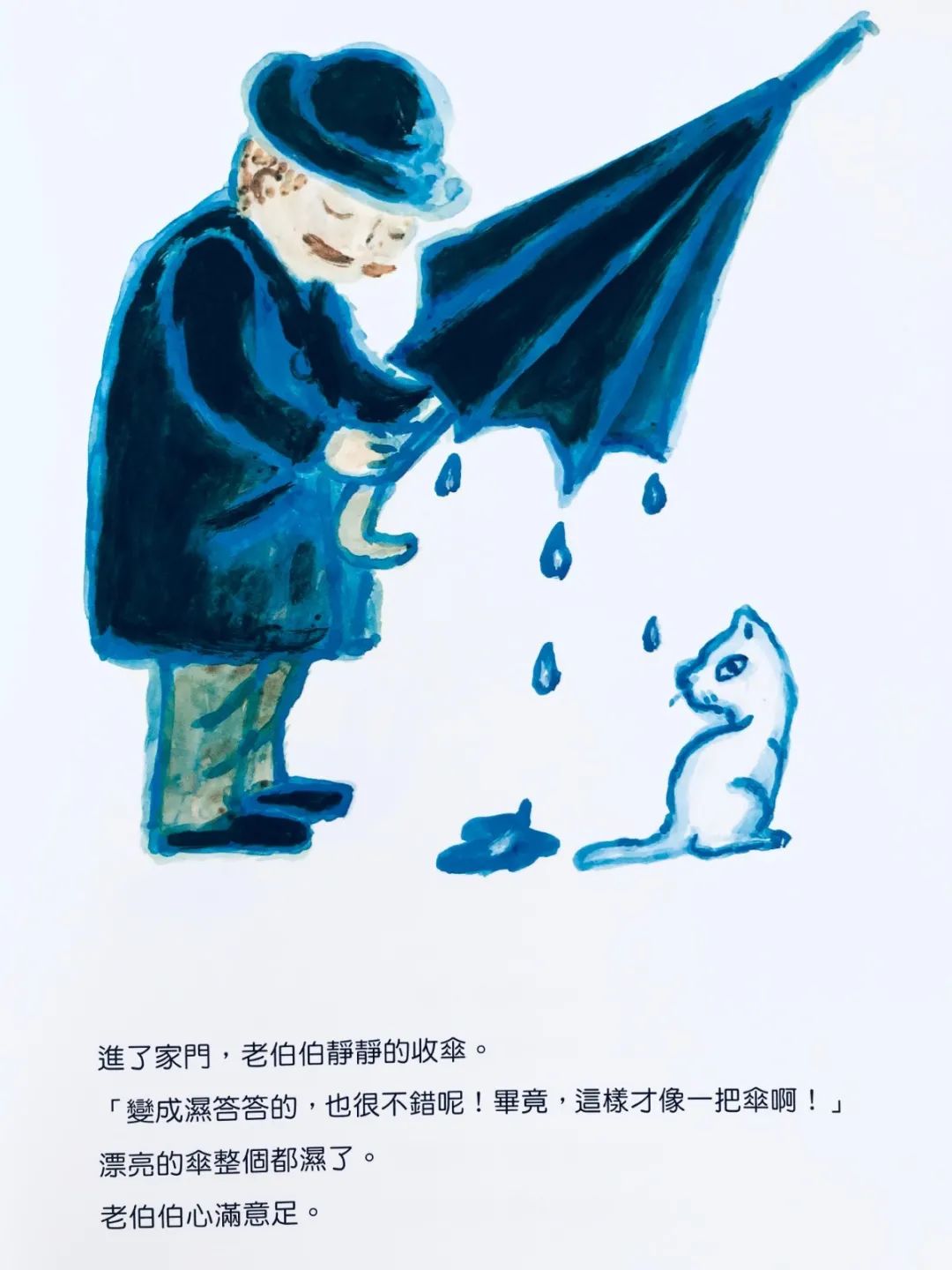喜欢不喜欢下雨,喜欢不喜欢带着雨伞穿着雨衣雨靴,这都是个人的选择和习惯。即使是面前这本 《老伯伯的雨伞》中的老伯伯,从心疼他的雨伞到重新喜欢下雨的声音下雨的节奏,下雨的湿度和温度,这也真是个奇怪但有意思的老伯伯呀!