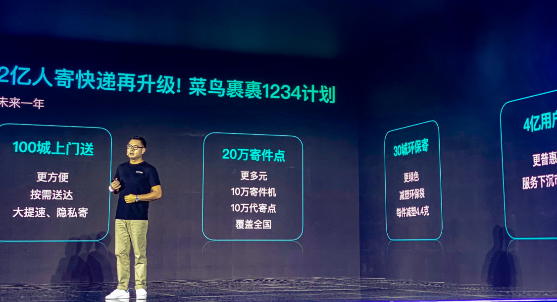 9月20日,在菜鸟裹裹2020发布会上,菜鸟裹裹CEO李江华宣布“1234战略”:未来一年,100城寄快递可按需送达上门,20万寄件点将覆盖全国,30城上线环保袋,服务4亿用户。