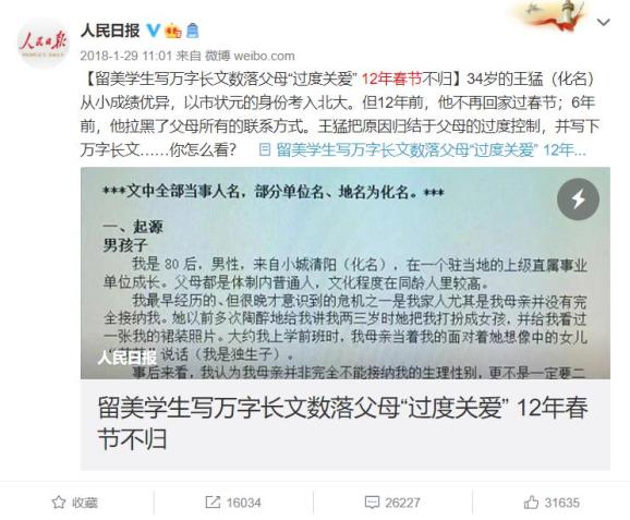 前年春节,一篇数落父母“过度关爱”的自述文章在网上热传。