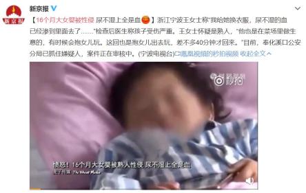 下面这个16个月大女婴被性侵,正是在取得家长信任后,将女儿抱出去玩,有一次,送回来家长发现孩子纸尿裤上全是血��