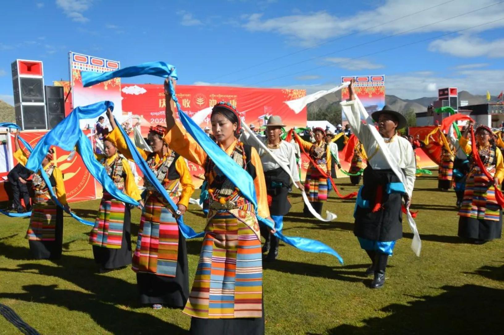 图为自治区第三届“中国农民丰收节”庆祝活动开幕式文艺演出现场。在江孜县城江虹南路,农畜产品展销会从9月18日便已拉开帷幕。来自拉萨、日喀则、山南、那曲等市的60多家合作社和企业参加了展销会。新鲜瓜果蔬菜、粮食深加工产品、民族手工艺品等琳琅满目的产品吸引了众多消费者前来选购。日喀则市桑珠孜区的尼玛普赤给上小学三年级的女儿选购了一套藏文书法用具。“现在生活吃穿不愁了,我能感受到身边人都越来越重视教育,让孩子学到更多科学知识,同时更好地传承和发扬中华优秀传统文化,增强文化自信和民族自豪感。”尼玛普赤说。
