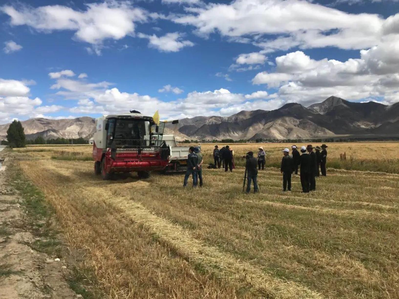 图为江孜县青稞机械化收割现场。江孜县良种繁育基地“喜马拉22号”一级种子田中,青稞籽粒饱满、丰收在望。据了解,江孜县拥有“全国农业百强县”“全区商品粮基地县”等众多头衔,素有“西藏粮仓”的美誉。在金黄的沃野中,不时传来阵阵机器轰鸣声,记者看到,勤劳朴实的江孜农民正热火朝天地收割青稞等作物,丰收的欢乐洋溢在黝黑的脸上。“今年又是一个丰收年,预计全县粮食产量将达14320万斤,比去年增产199万斤。”江孜县农业农村局工作人员曲珍介绍道。