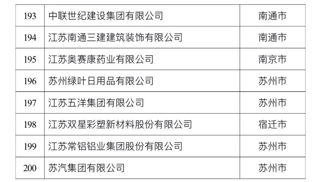9月21日,由江苏省工商联发布的最新民营企业百强名单出炉。与往年不同的是,本次榜单范围从百强扩大到200强。