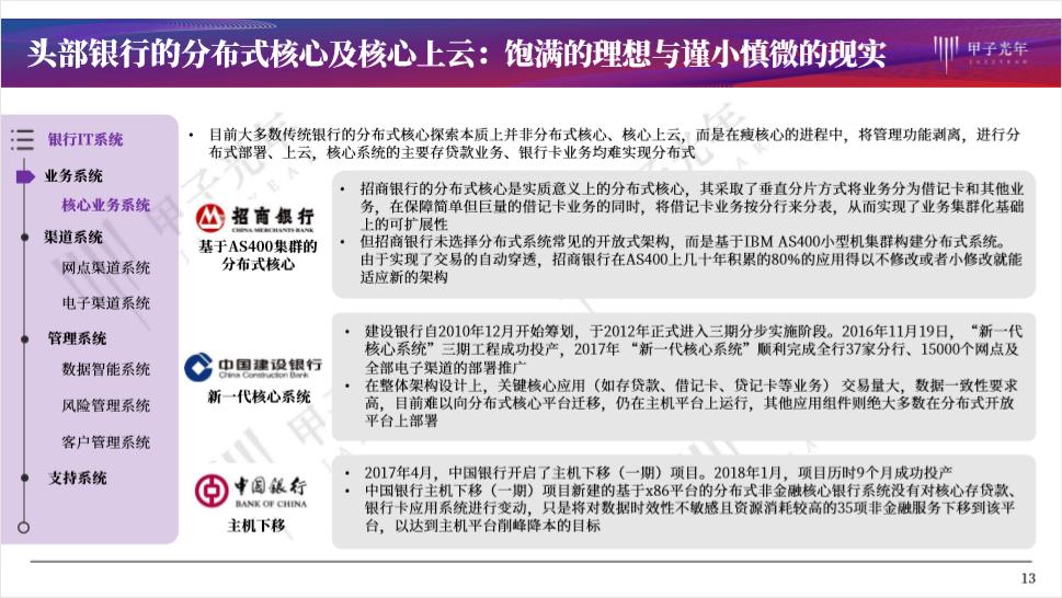 原标题:《《中国金融科技系列报告》No.3:梳理了100+银行的核心系统后,我们发现…… | 甲子智库》