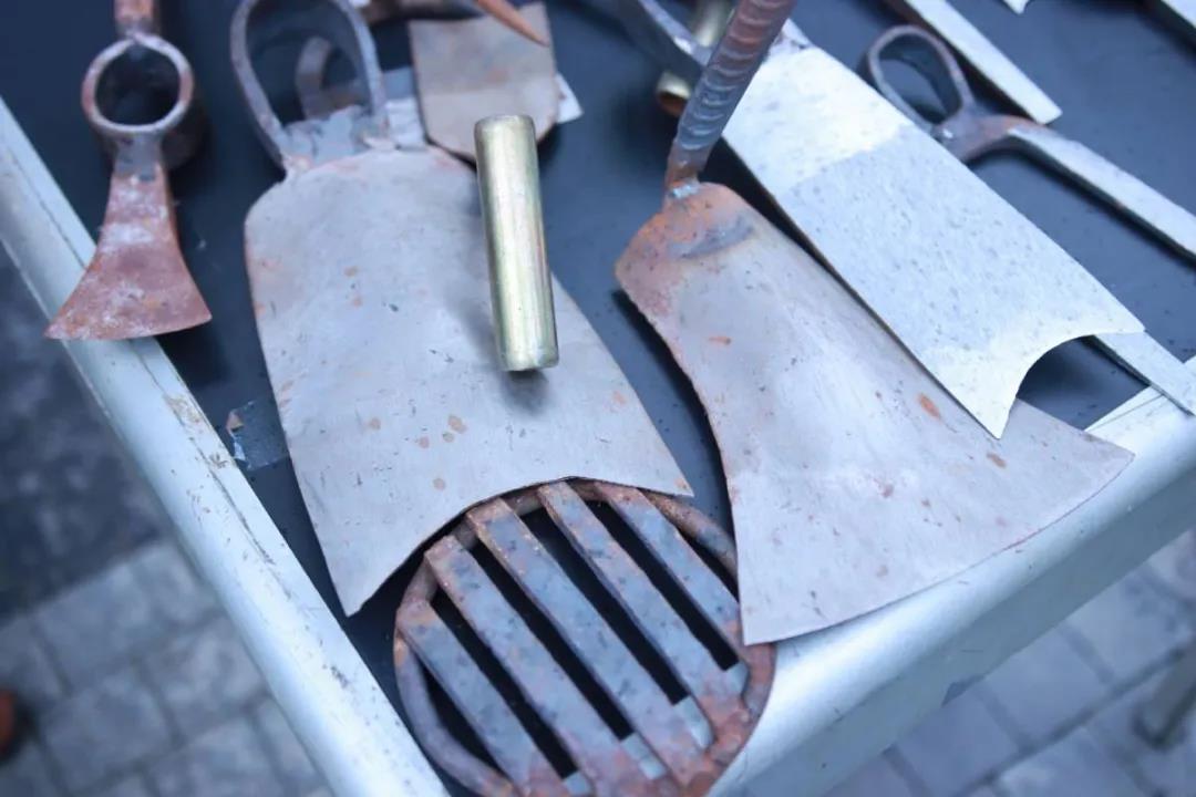 示范区非遗项目——铁制农具锻打技艺展位前,“叮叮当当”的铁器敲打声不断。