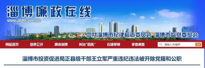 淄博市投资促进局正县级干部王立军严重违纪违法被开除党籍和公职
