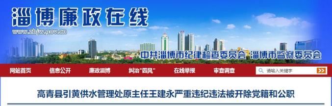 高青县引黄供水管理处原主任王建永严重违纪违法被开除党籍和公职