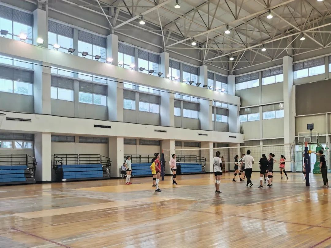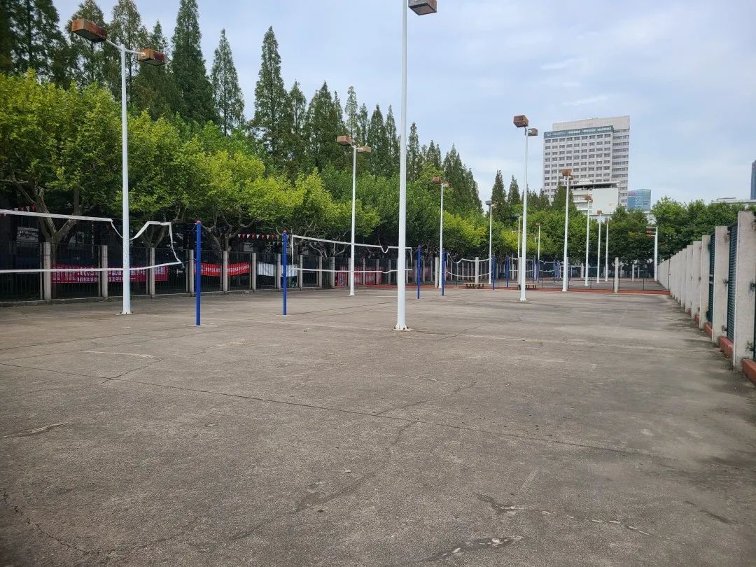 (小编提醒:由于场地限制,羽毛球场、篮球场、排球场共用一片区域,同学们可要仔细看清楚标线哦!)