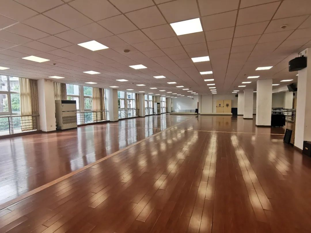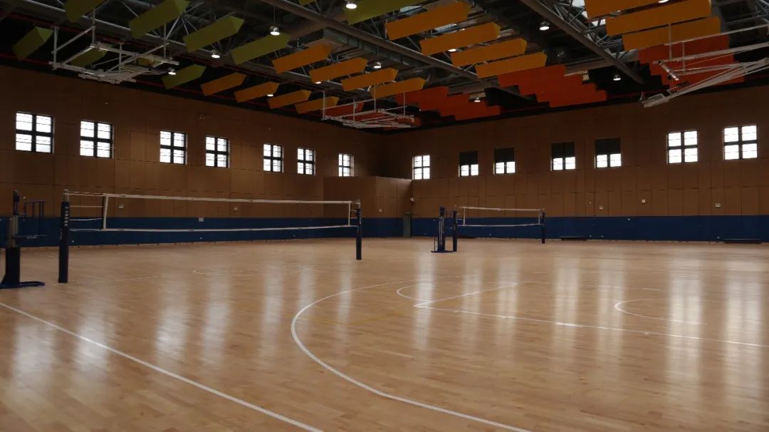 这里有乒乓球房,有健身房、舞蹈室,更有顶尖规格的超大羽毛球场、网球场、篮球场、排球场……篮排球场的地面均铺设了专业运动木地板,篮球架更安装有机械升降系统,可以便捷快速地完成篮球场和排球场的转换。