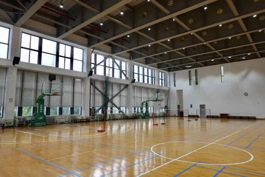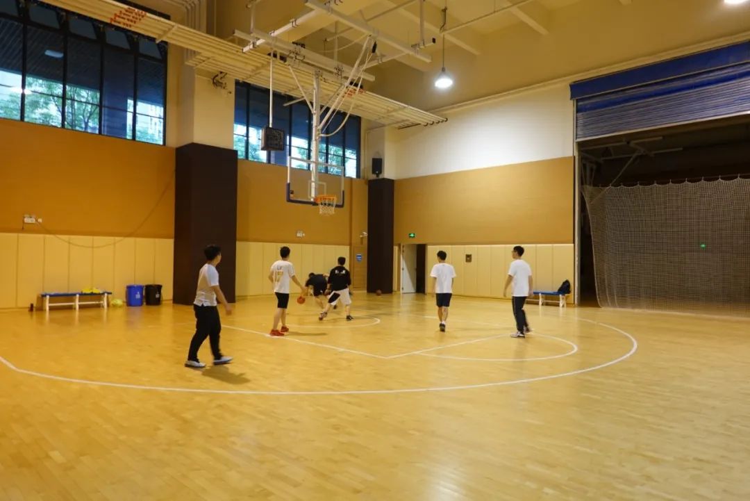学生综合体育馆毗邻宿舍和食堂,里面的篮球馆、舞蹈训练房、体能训练房均位于地下一楼。一踏进亮堂堂的篮球馆,运动之心早已在熊熊燃烧!馆内设施崭新,里面打篮球的同学可谓是酣畅淋漓。只是没有看台,苦了看球的同学啦。