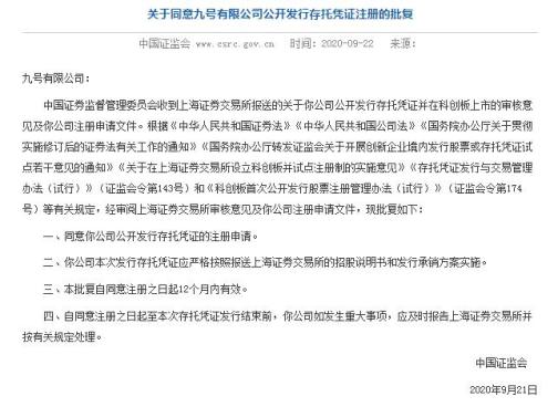 9月22日晚间,证监会发布公告称,同意九号有限公司(即“九号智能”)科创板公开发行存托凭证注册。
