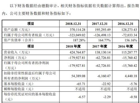 然而,尽管公司三年来业绩持续增长,但公司也三年里持续亏损达26亿。2016年至2018年,公司连续三年净利润亏损,分别为-1.58亿元、-6.27亿元和-17.99亿元。截至2018年12月31日,公司净资产也为负,为-32.30亿元。