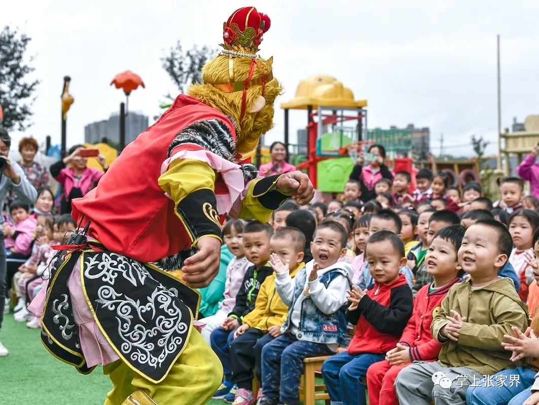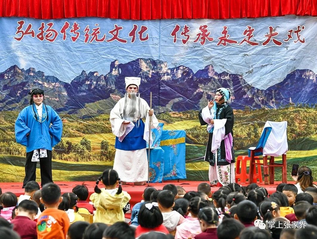 9月23日,永定区传承中心的演员们走进张家界民族实验幼儿园,为孩子们表演《三娘教子》和《孙悟空三打白骨精》等优秀的永定大戏曲目,让孩子们在感受非物质文化遗产魅力的同时,促进中华优秀传统文化的保护和传承。
