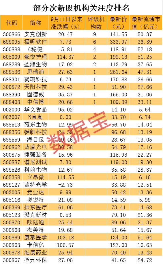 优质次新股名单来了部分优质次新股因为低迷行情而表现较差,或许会形成一个阶段性的低点,未来跑赢大盘概率较高。分析卡倍亿和康泰医学等次新龙头股可以发现,市场对于热点行业、概念的次新股,依然青睐有加。