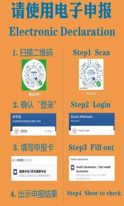答:进行健康申报时可分为纸质申报、线上申报两种方式。纸质申报即所有出入境人员在出入境时向口岸海关卫生检疫部门领取并如实填写《中华人民共和国出/入境健康申明卡》(包机到达前2小时填写)。线上申报即可使用海关陆续上线的“海关旅客指尖服务”进行申报,可提前24小时进行,最大程度节约通关时间。