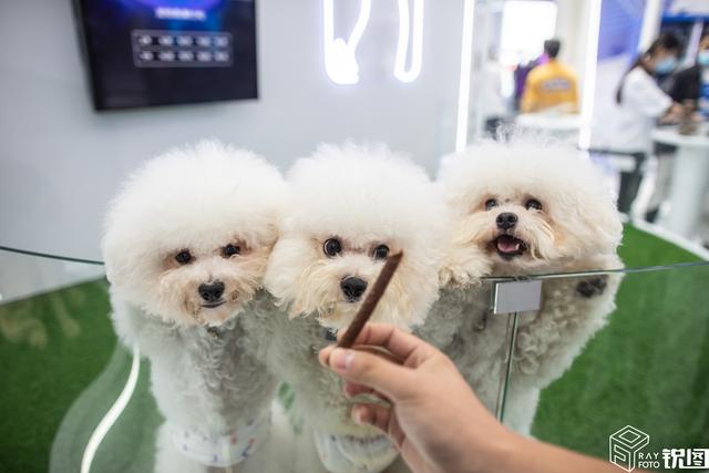 出现在上海“外滩大会”的三只比熊是三胞胎,今年1岁半,主人给它们取名“金吒“、”木吒“、“哪吒”。小比熊身处全球最有科技含量的金融大会中却只对吃的感兴趣,但殊不知,人们已经利用科技的力量在为它们的生活保驾护航。