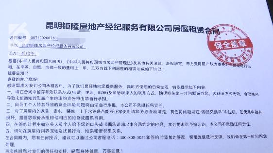 据了解,租客们此前与昆明钜隆房地产服务公司签订的租房合同都是年付,但是该公司与房东之间签署的合同却又是月付或者季度付。如今,租客们都支付了一年的房租,但是他们对应的不少房东却仅仅收到了一个月的租金。