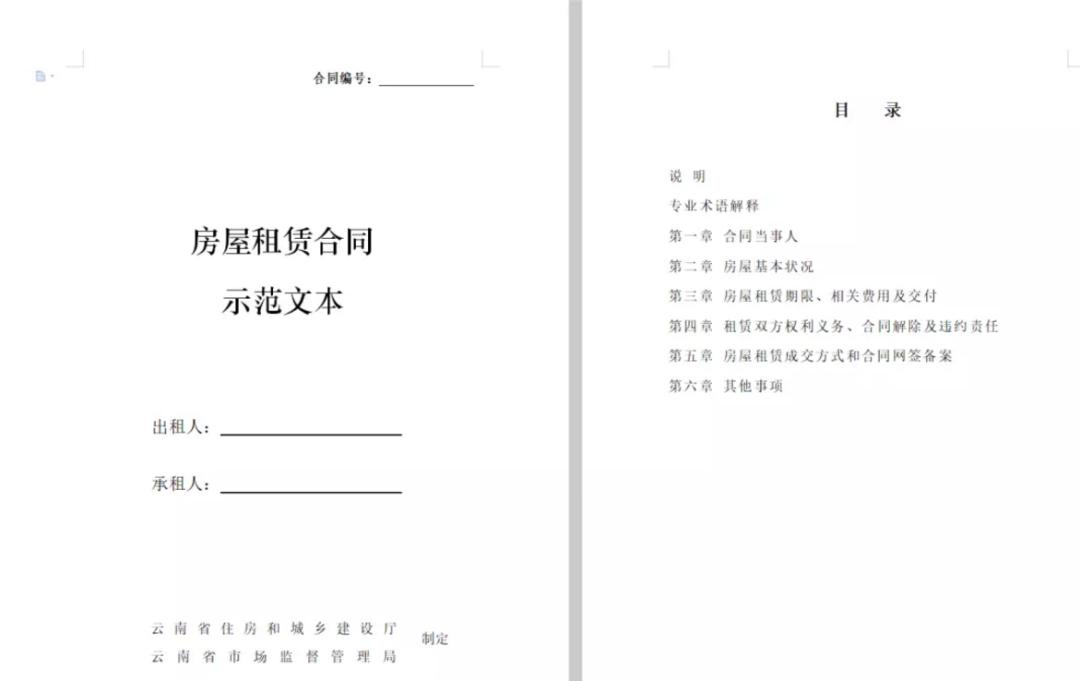 根据住房和城乡建设部等六部门《关于整顿规范住房租赁市场秩序的意见》及相关法律法规要求,云南省住房城乡建设厅、云南省市场监督管理局日前共同制定了《房屋租赁合同示范文本》。
