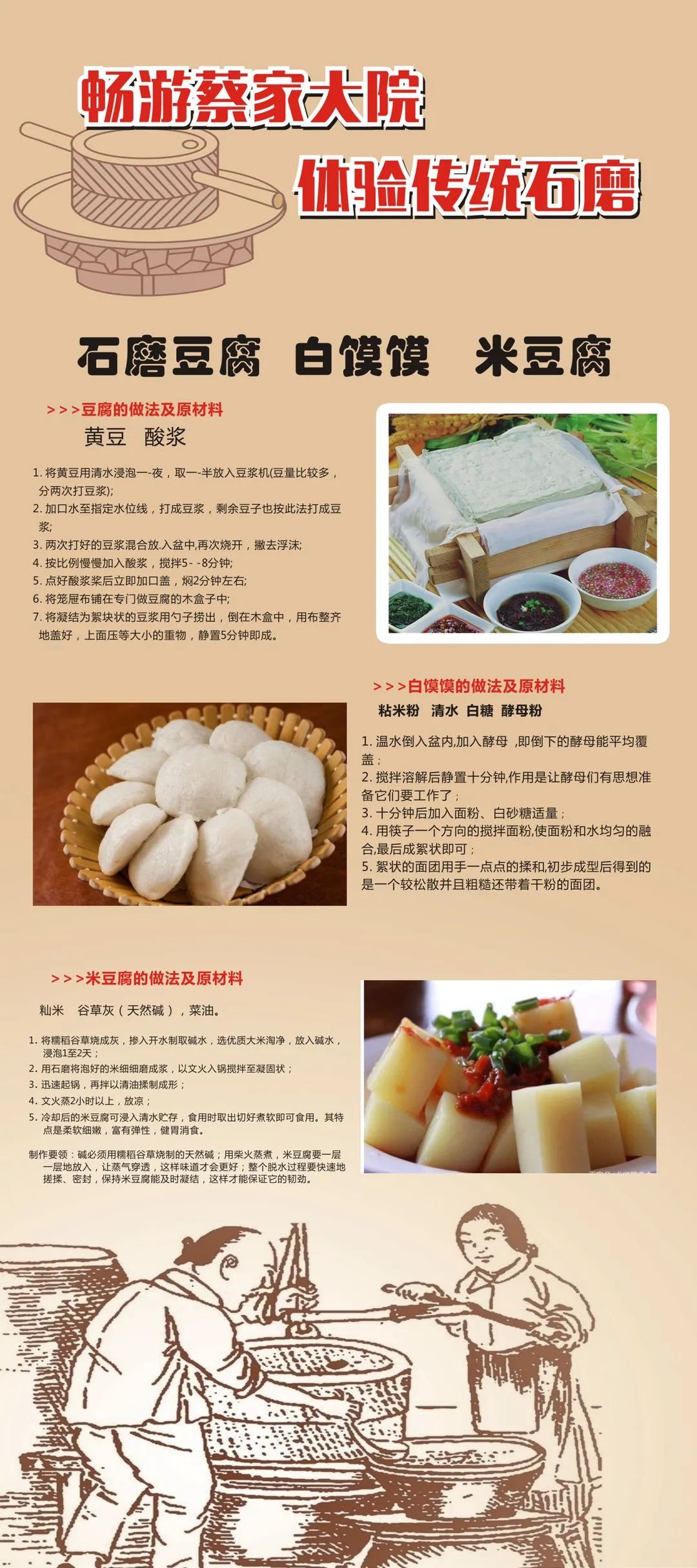 “畅游蔡家大院·体验传统石磨”农事研学活动。游客参观巴山农耕文化陈列馆,体验农耕与民俗文化,参与豆腐、米豆腐、白馍馍等传统美食手工制作环节。