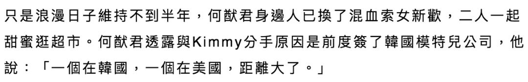 ▲ 他对此表示,Kim当时签了韩国模特公司,两人分隔两地。也许异地恋只是借口,毕竟真心相爱时间空间怎么会是距离,许是经过蜜恋期最初的悸动消散罢了。