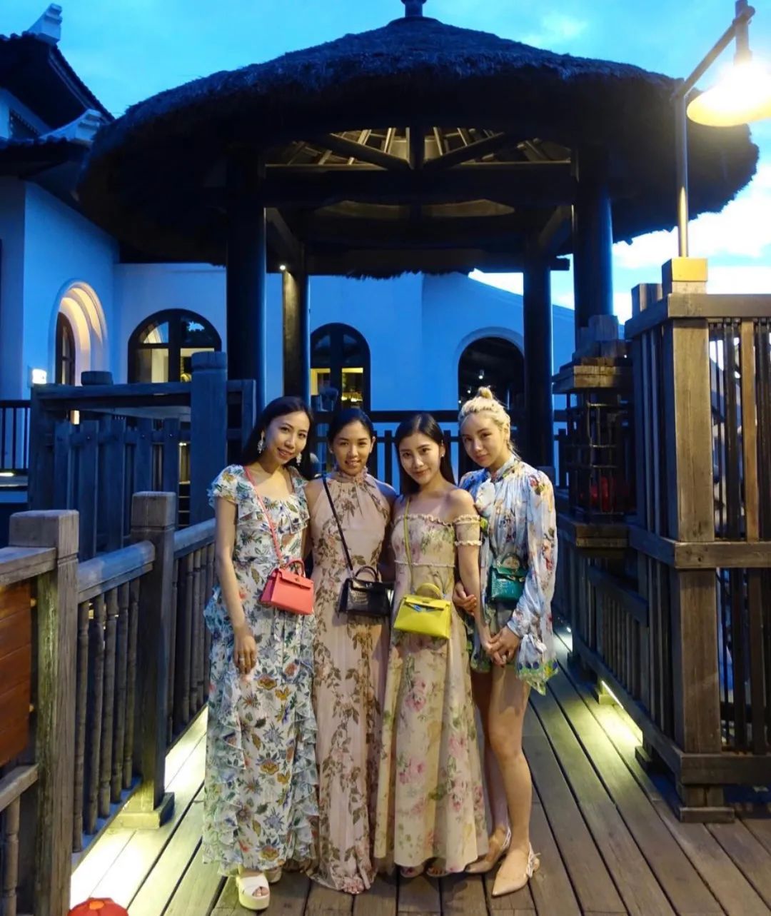 ▲ 这几位人手一个mini kelly的小姐妹更是各个都来头不小了。最左是台湾普立尔的前董事长黄震智的女儿黄郁婷,她爸为她投下40亿台币让她成为大溪笠復威斯汀酒店的操盘手和执行董事。左二是时捷集团主席、仁济医院前主席严玉麟的女儿严纪雯,也是社交圈的名流。左三则是马来西亚富商陈志远之女陈雪玲,她还有个身份是刘德华太太朱丽倩的表妹。