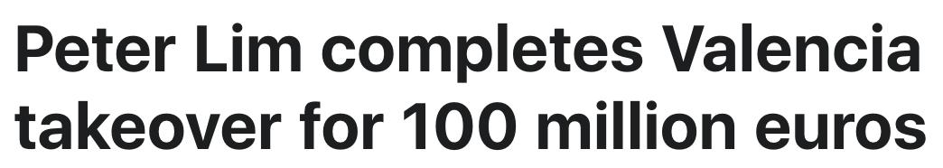 ▲ 2014年,他更是斥资1亿欧元买下了瓦伦西亚70.4%的股份,成为了这家西甲俱乐部名正言顺的大老板。