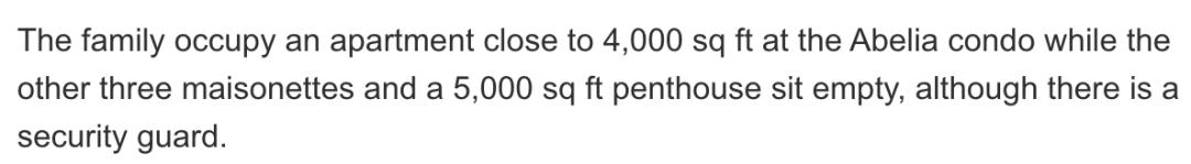 ▲ 虽然只住在其中将近371平方米的公寓里,其他都直接空着留给保安看守。