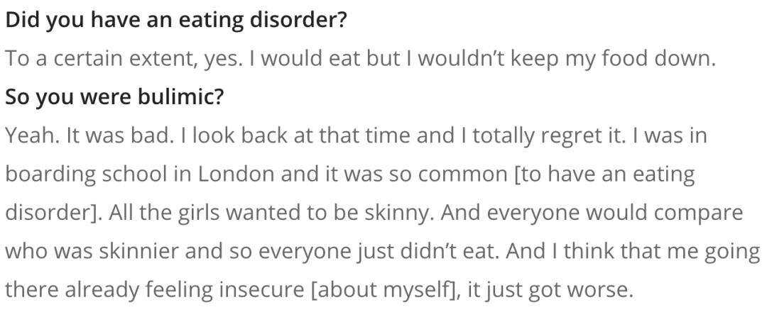 ▲ 也是在那里,因为失去监管和对身材的盲目追求,她患上了进食障碍,开始暴饮暴食和催吐。