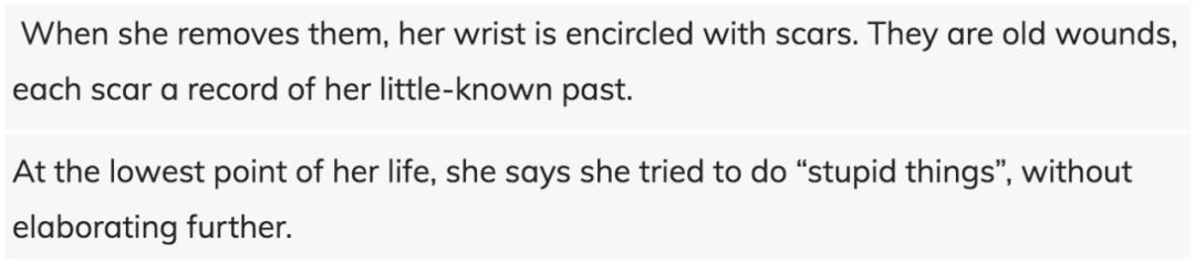 ▲ 更因为严重的焦虑抑郁,让她出现了自残等过激行径。