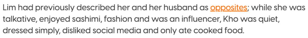 她曾表示自己跟丈夫个性迥异,喜爱偏好似乎都天差地别。