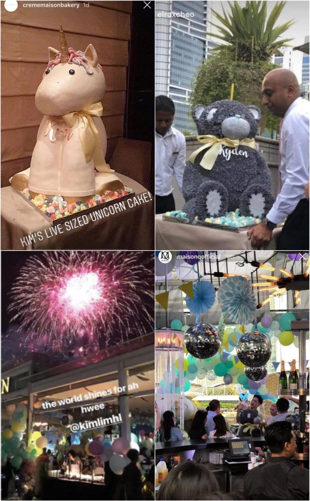 ▲ 等身大的蛋糕,狂欢现场搭配盛大的绽放烟花,右下角还能看到她老公抱孩子的身影。