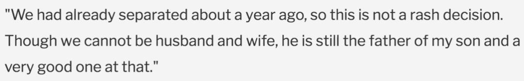 ▲ 从分居到离婚都是女方主动,而男方只能在事后悻悻地对媒体表示“她不爱我”。