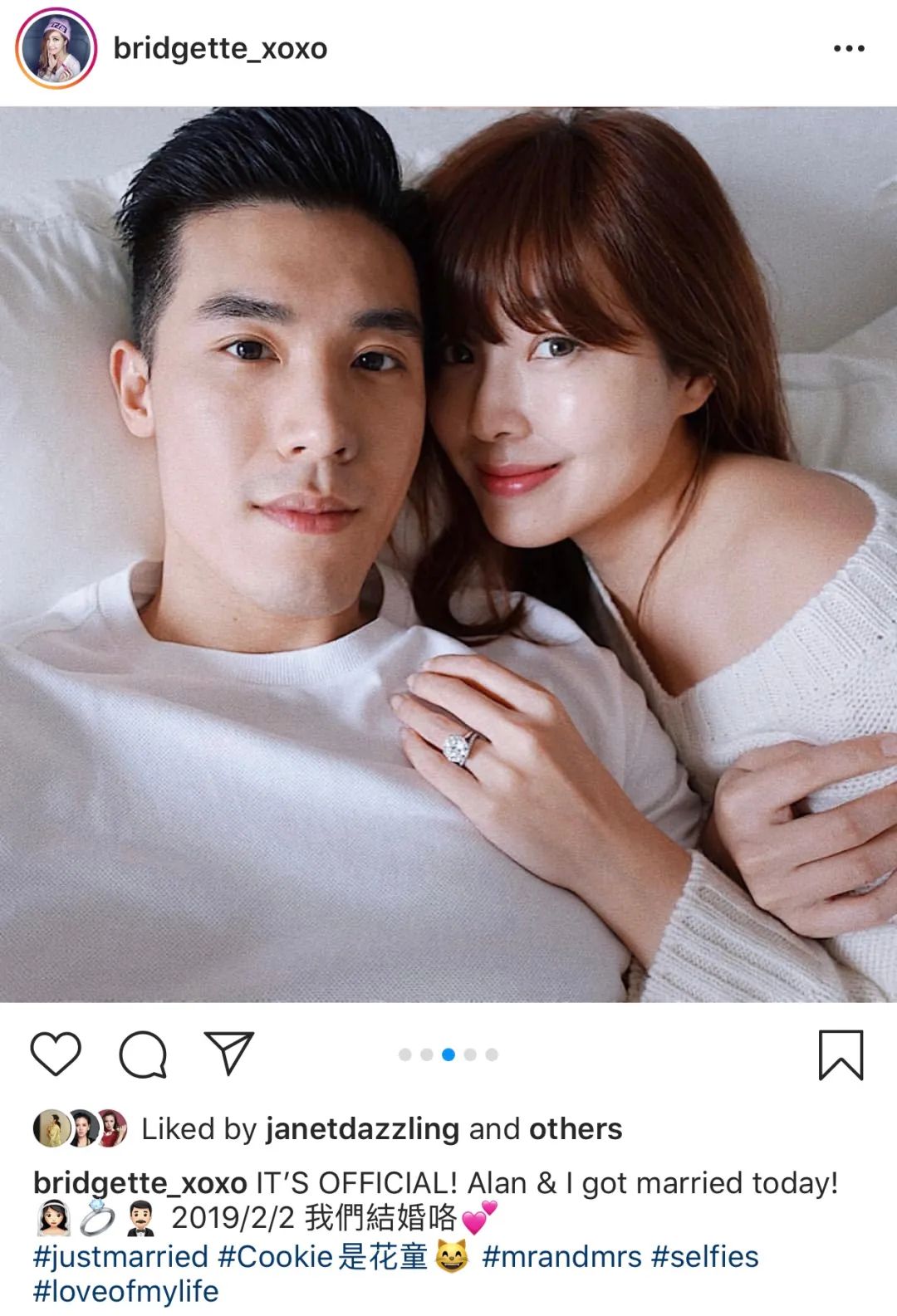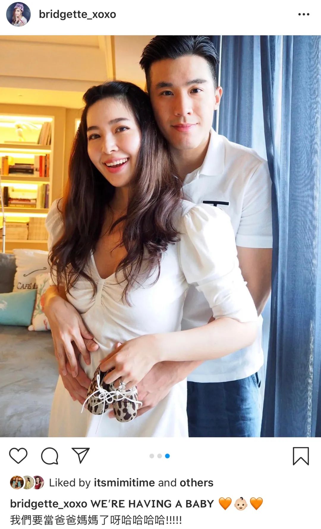 ▲ 不过夫妻感情并没有被媒体报道影响,廖晓乔时常在ins大秀恩爱,今年7月底还公布了怀孕喜讯。