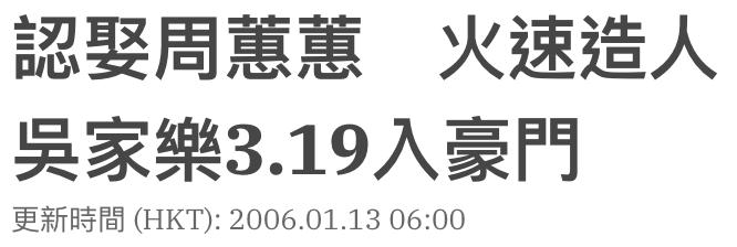 还有另一位TVB男艺人也如此,早年住公屋的吴家乐娶了香港其士集团创办人周亦卿的五女儿,周蕙蕙。