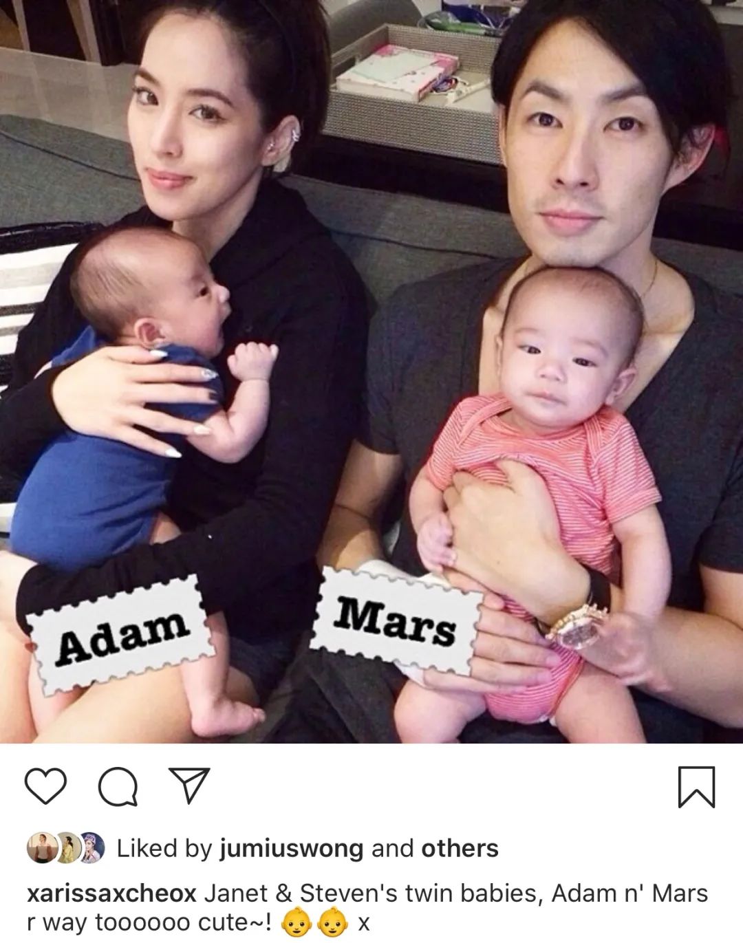 ▲ 就是吴建豪石贞善这对曾经的爱侣怀里抱着的婴儿。至于图上这两位纠葛十几年的狗血爱情故事下次我们细聊。